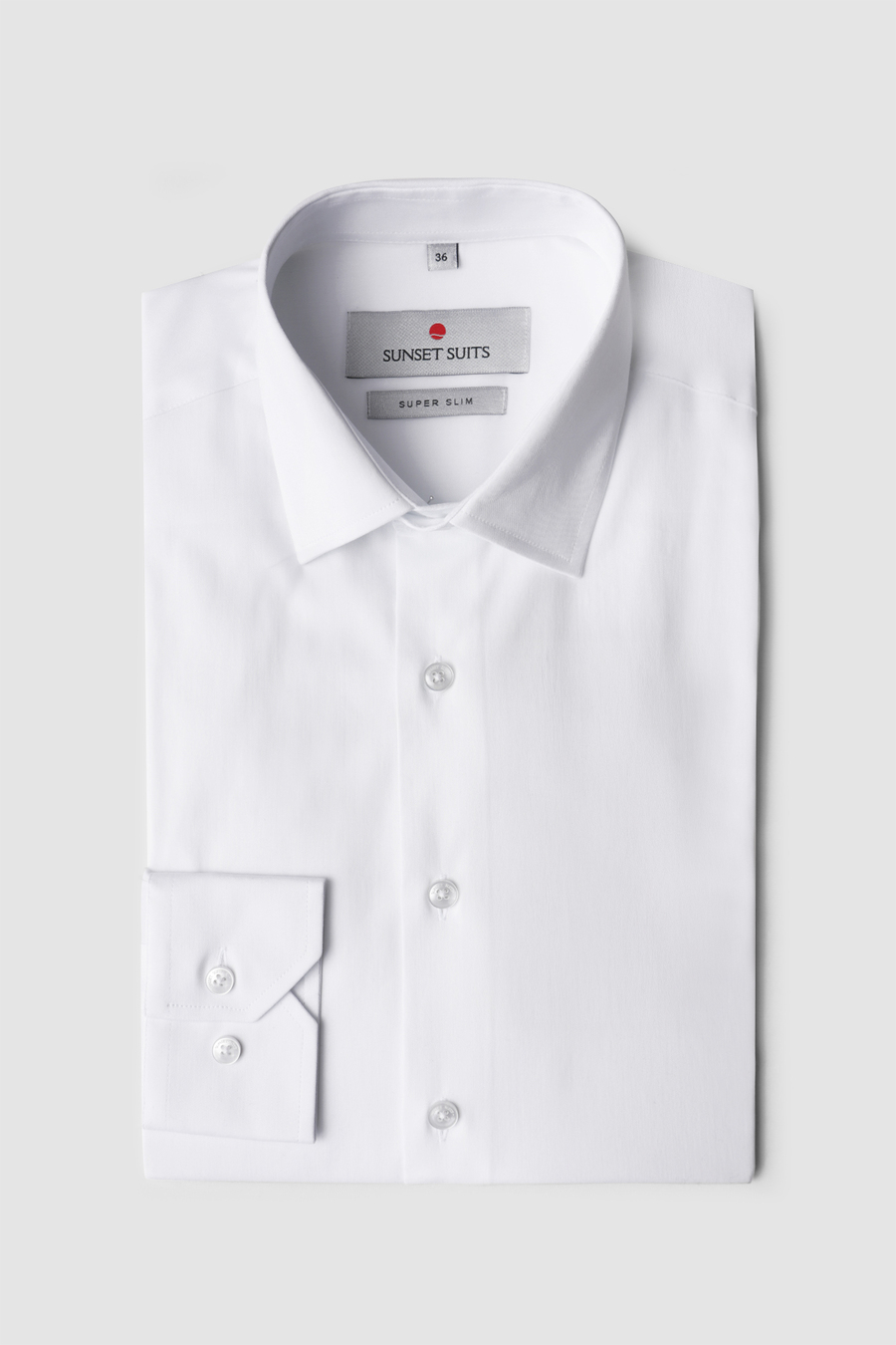 Super dopasowany krój polecany szczególnie tym, którzy pragną podkreślić walory swojej sylwetki bądź posiadają wyjątkowo szczupłą budowę ciała. Kołnierzyk typu kent świetnie koresponduje z krawatami, a mankiet zakończony guzikiem jest wygodnym wyborem. Biała gładka koszula to klasa sama w sobie.