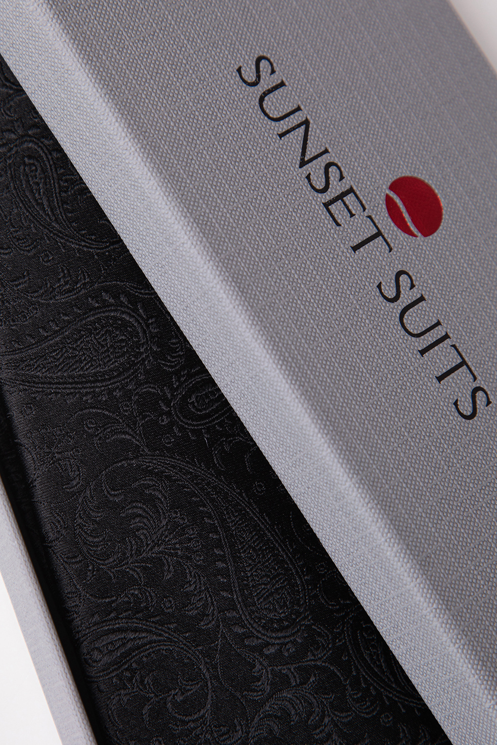 Czarny jedwabny krawat męski od Sunset Suits – kwintesencja klasy i ponadczasowej elegancji