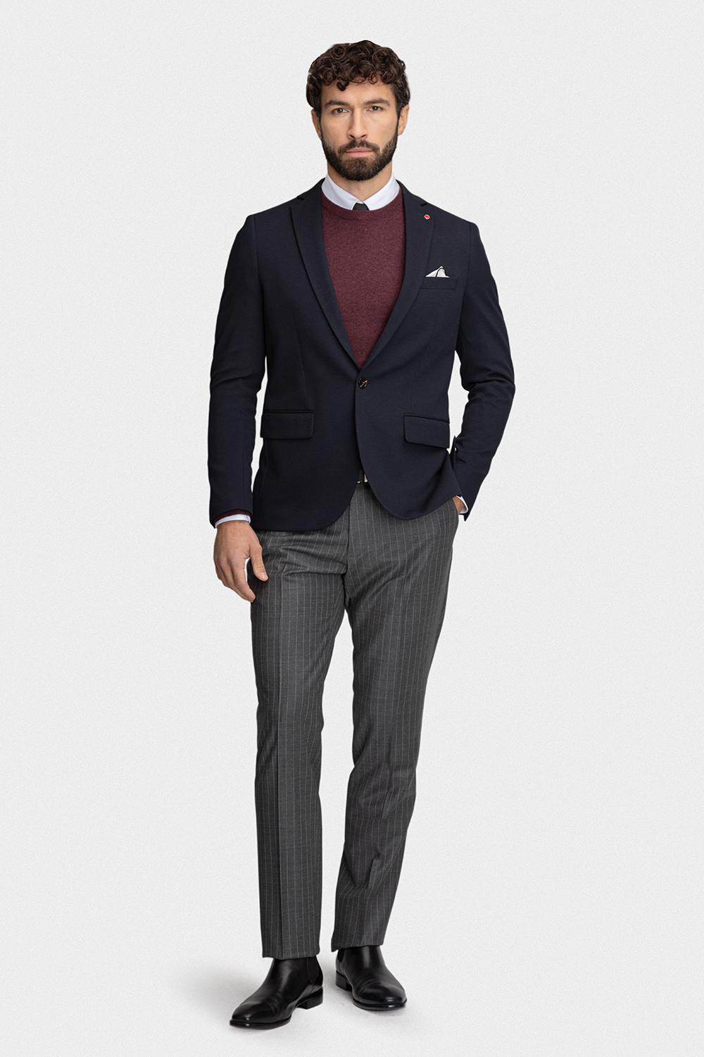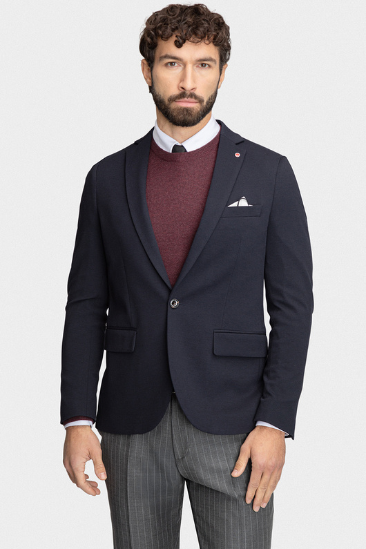 Granatowa marynarka męska wpasuje się w niemal każdą stylizację męską czyniąc ją oryginalną. Zastosowanie najwyższej jakości mieszanki tkanin gwarantuje niezwykle miękką, elastyczną propozycję o wysokiej głębi koloru. Tkanina o niskim zakresie pielęgnacji, trwała i odporna na zagniecenia.