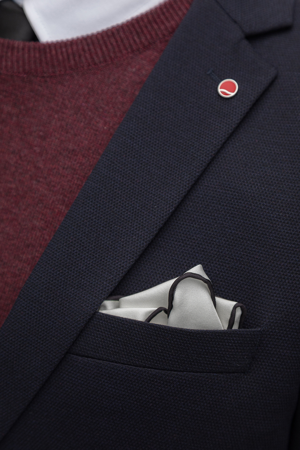 Marynarka jest jednorzędowa, zapinana na guzik. Klapy, butonierka oraz cięta brustasza - idealna na subtelną poszetkę, dodają całości klasycznego charakteru.
