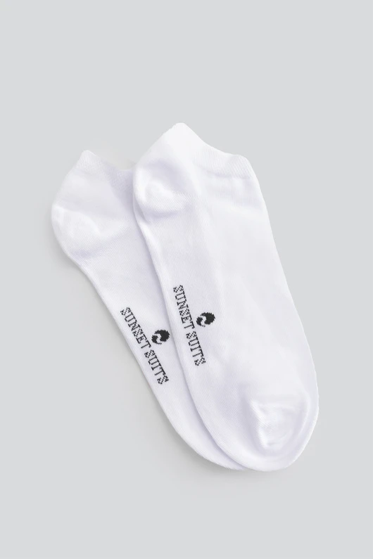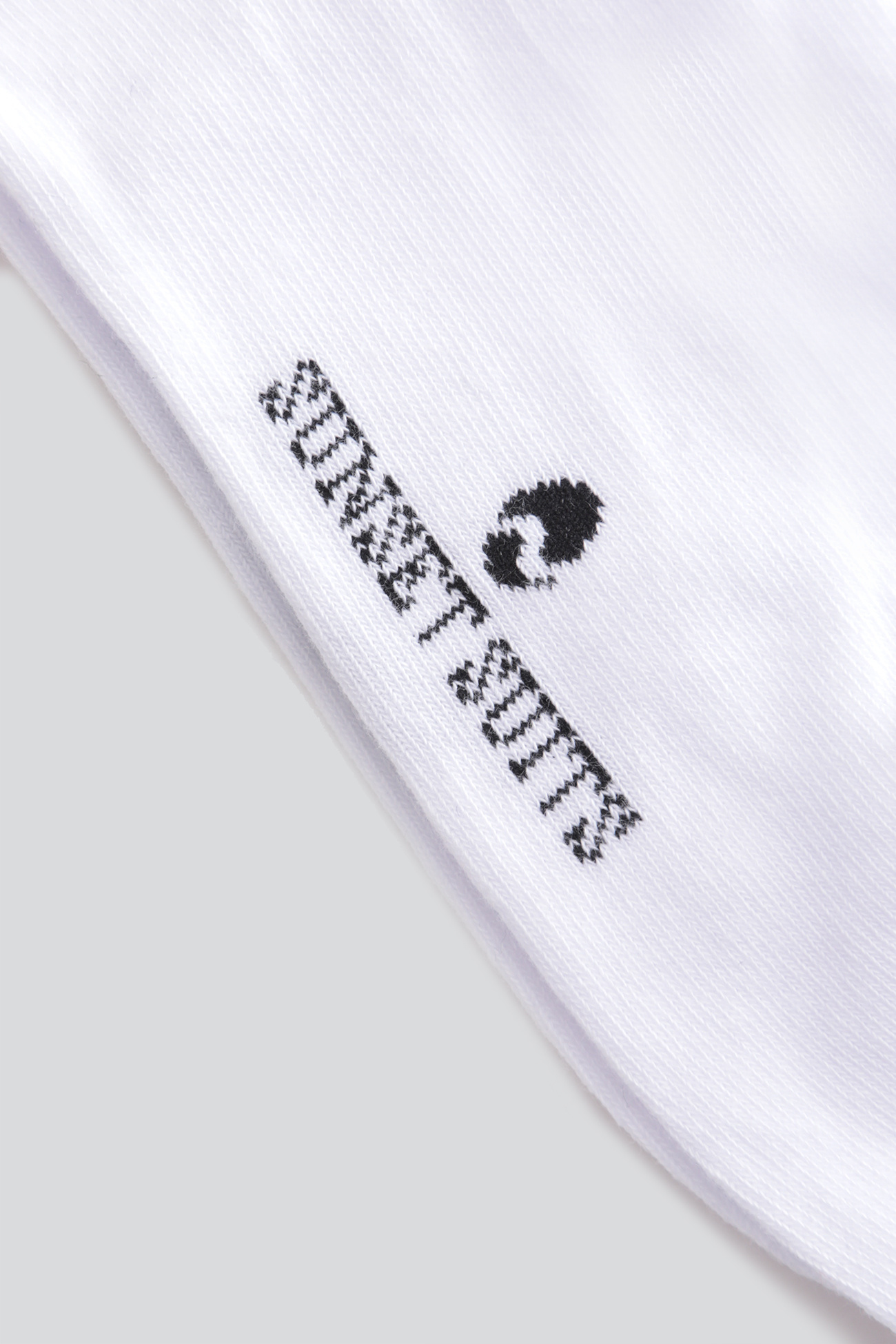 Wyższe skarpetki typu stópki w jasnym białym kolorze o gładkiej strukturze.
