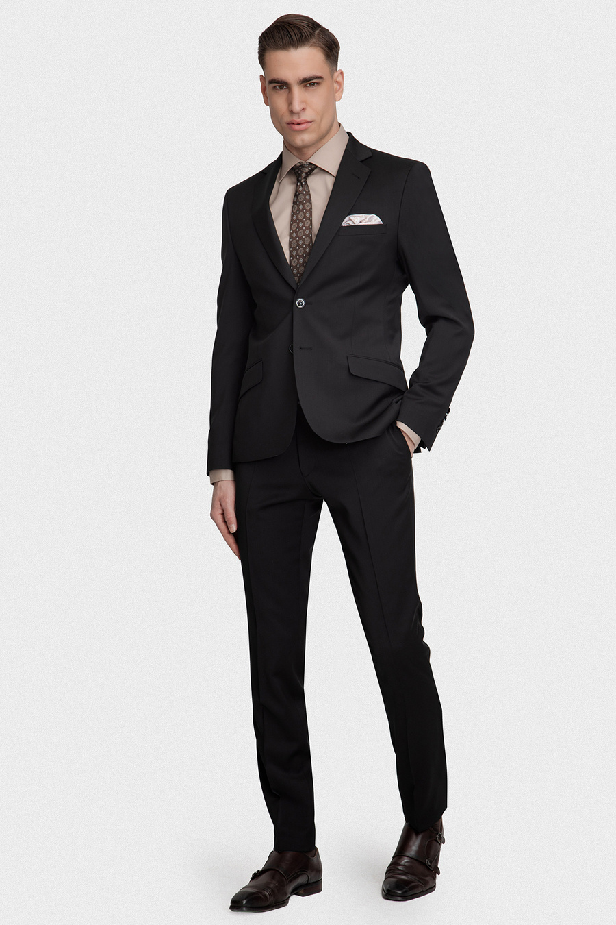 - Czarne spodnie garniturowe z wełny Marzotto 02000D90GSB Czarne spodnie garniturowe z wełny Marzotto 02000D90GSB