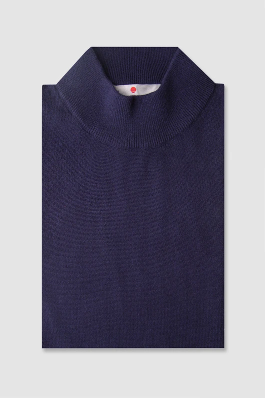 Granatowy półgolf o gładkiej strukturze wyposażono w ściągacze w pasie i na rękawach, co wspiera utrzymanie optymalnej temperatury i lepsze dopasowanie do sylwetki. Regularny fason gwarantuje swobodę ruchów, dzięki czemu model sprawdzi się zarówno na co dzień, jak i w bardziej eleganckich zestawieniach.