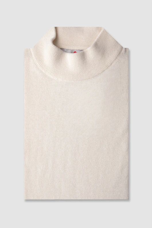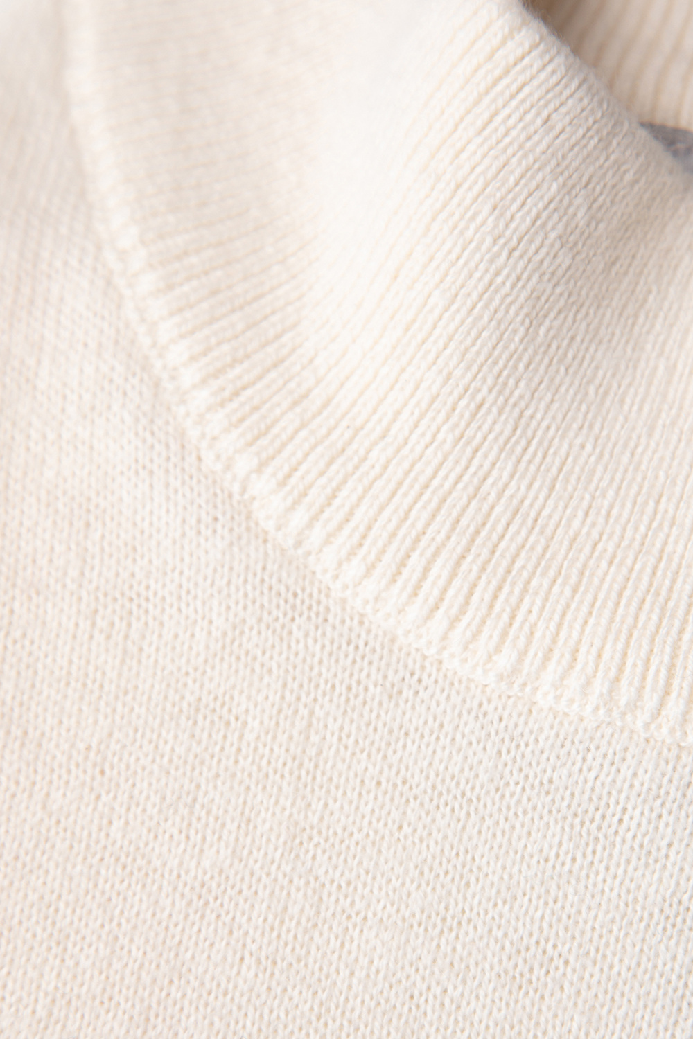 Kremowy półgolf o gładkiej strukturze wyposażono w ściągacze w pasie i na rękawach, co wspiera utrzymanie optymalnej temperatury i lepsze dopasowanie do sylwetki. Regularny fason gwarantuje swobodę ruchów, dzięki czemu model sprawdzi się zarówno na co dzień, jak i w bardziej eleganckich zestawieniach.