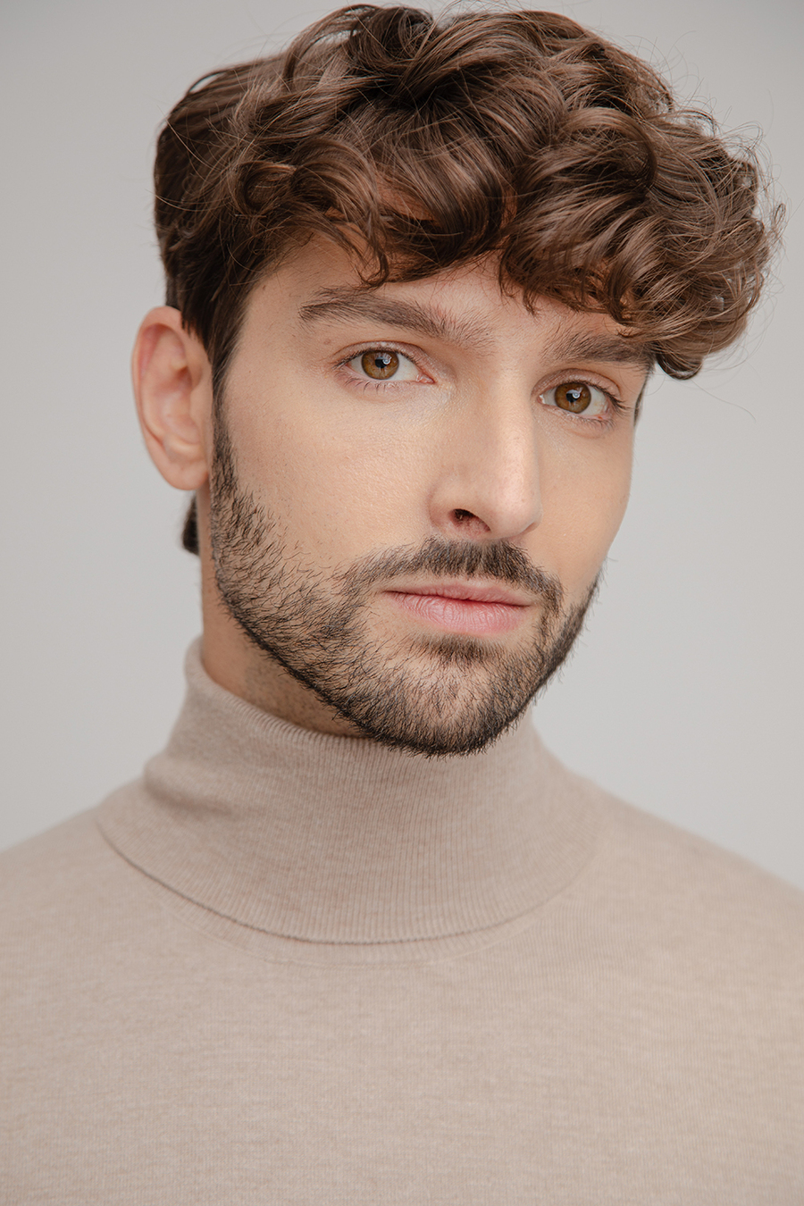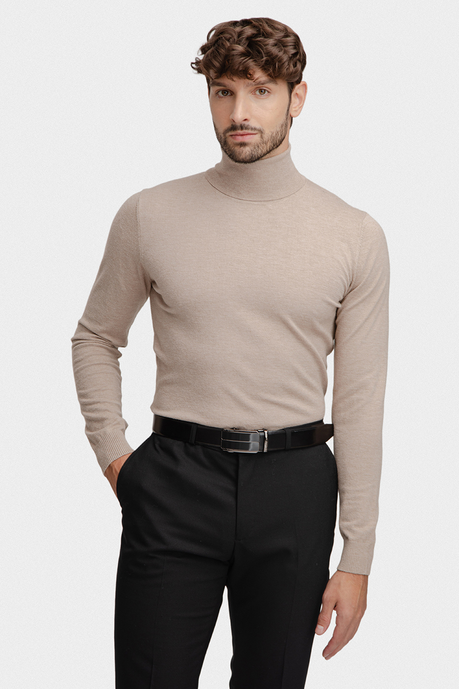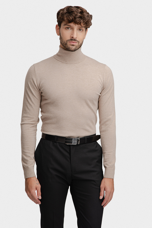 - Dzianinowy golf męski beżowy 03100A15GRA Dzianinowy golf męski beżowy 03100A15GRA