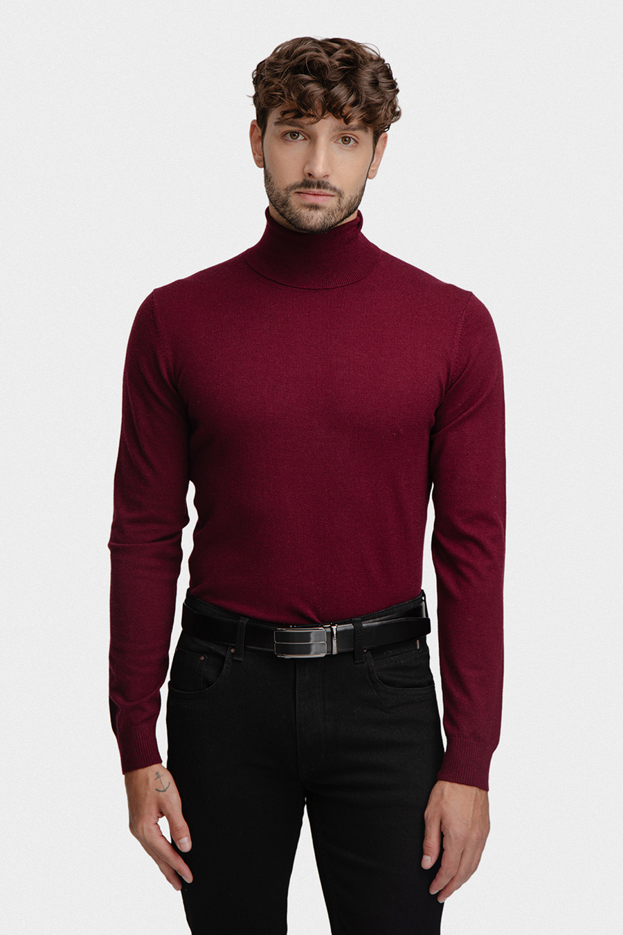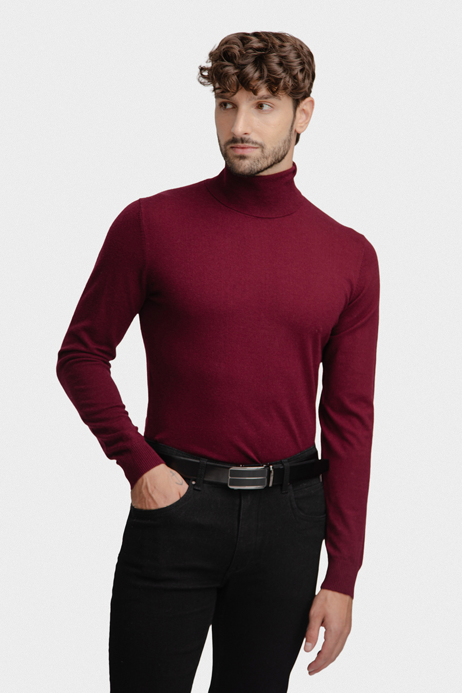 Dzianinowy golf męski bordowy 03100A55GRA