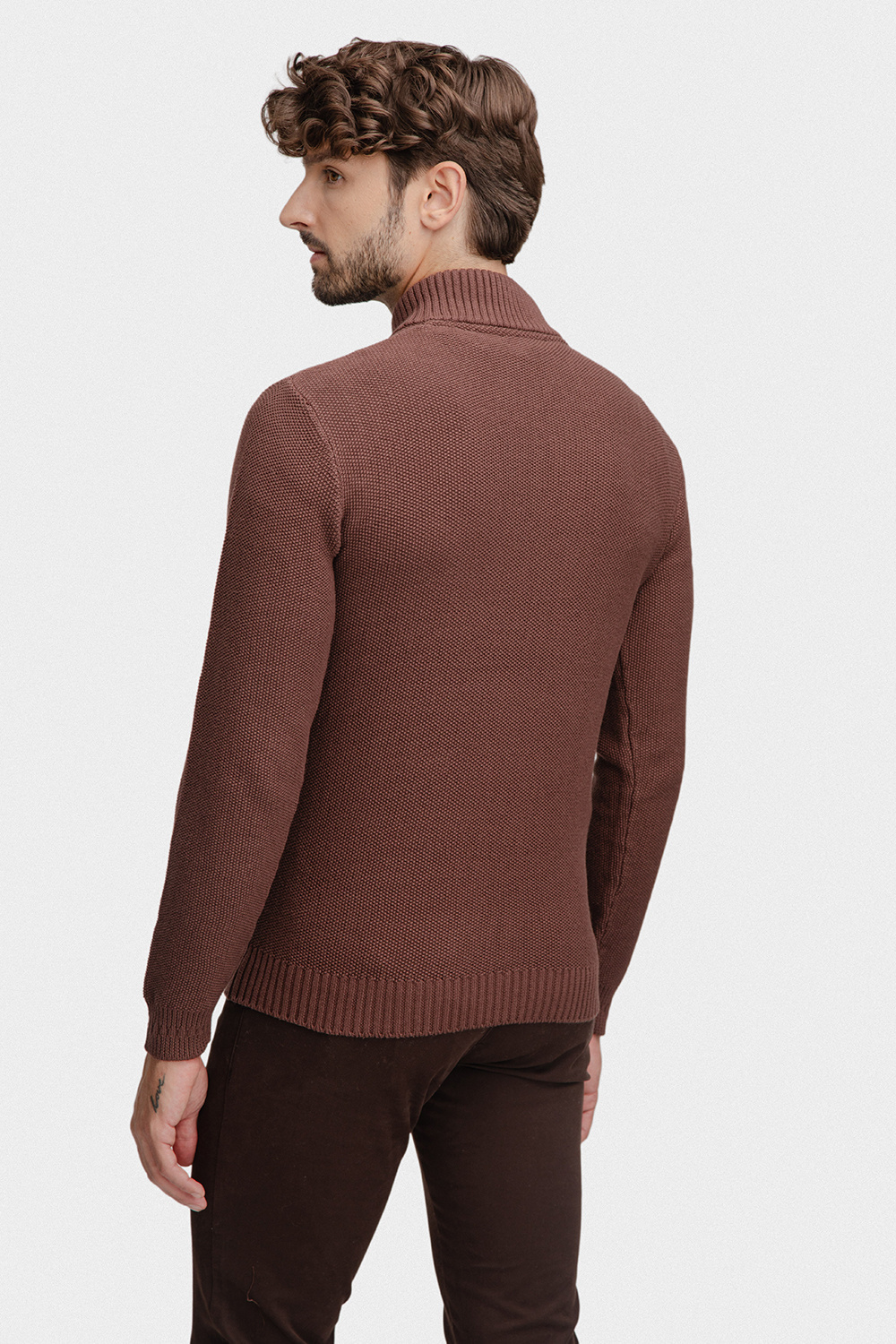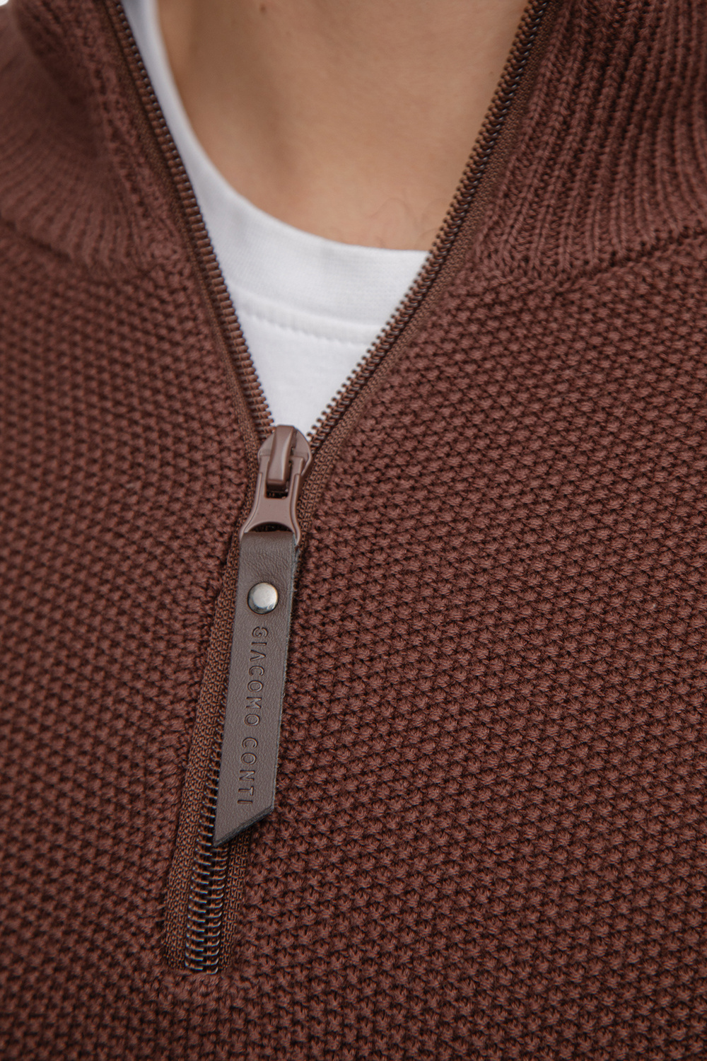 Brązowy sweter CLETO od Giacomo Conti to doskonały wybór dla osób poszukujących wygodnego i stylowego zamiennika dzianiny wełnianej.