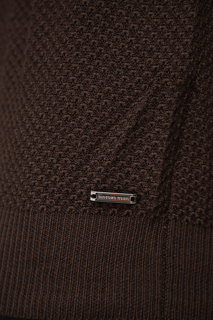 Brązowy sweter z subtelną strukturą to propozycja dla mężczyzn ceniących nowoczesną elegancję i całodzienny komfort, który łatwo łączy się z koszulą, chinosami lub jeansami. Cienka, oddychająca dzianina układa się swobodnie na sylwetce w kroju regular, zapewniając wygodę warstwowych stylizacji od biura po weekendowe wyjścia.