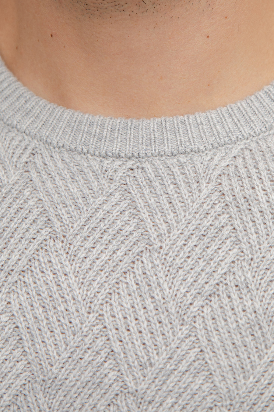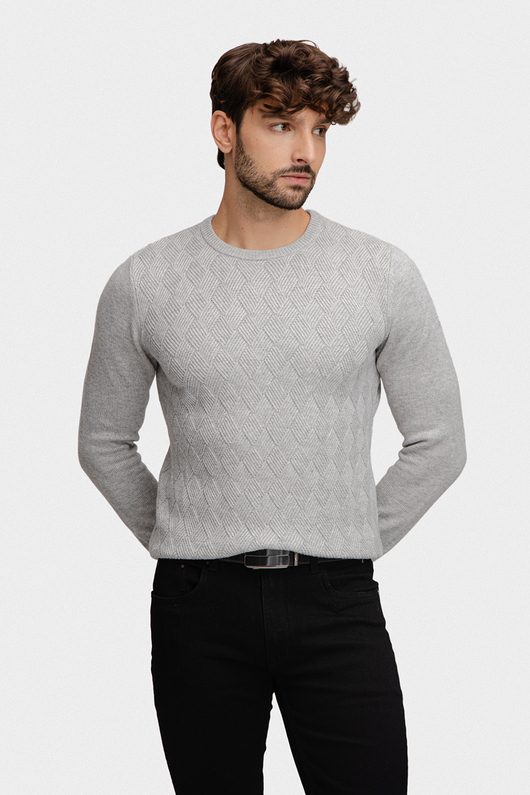 Charakterystyczna, gruba faktura w jodełkę nadaje mu nowoczesnego, a jednocześnie klasycznego wyglądu. Klasyczny krój rękawów zapewnia swobodę ruchów i uniwersalny charakter modelu, czyniąc go świetnym wyborem zarówno na co dzień, jak i na mniej formalne okazje. Uniwersalny szary odcień sprawia, że sweter łatwo skomponujesz z jeansami, chinosami czy eleganckimi spodniami.