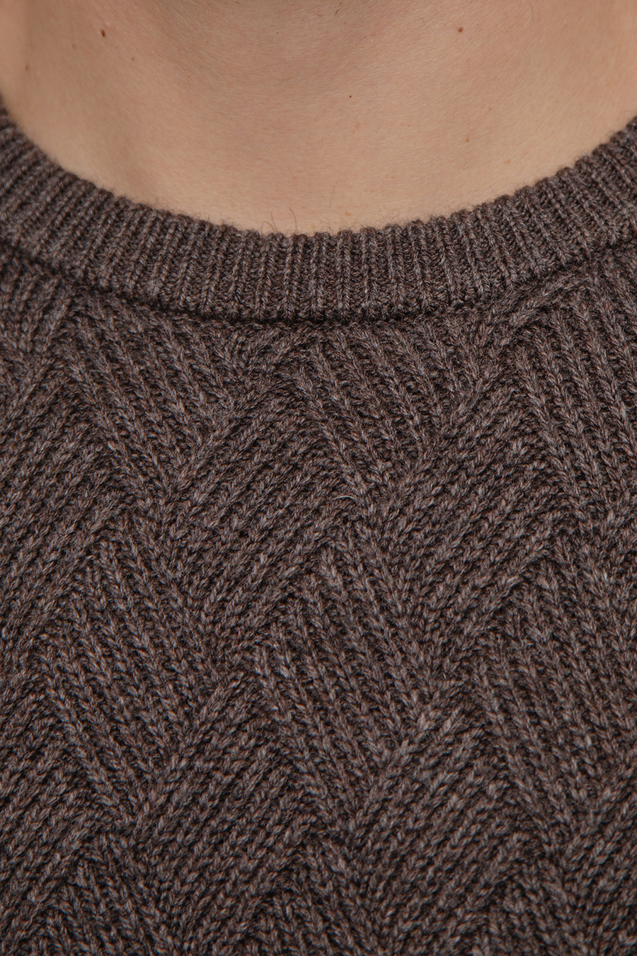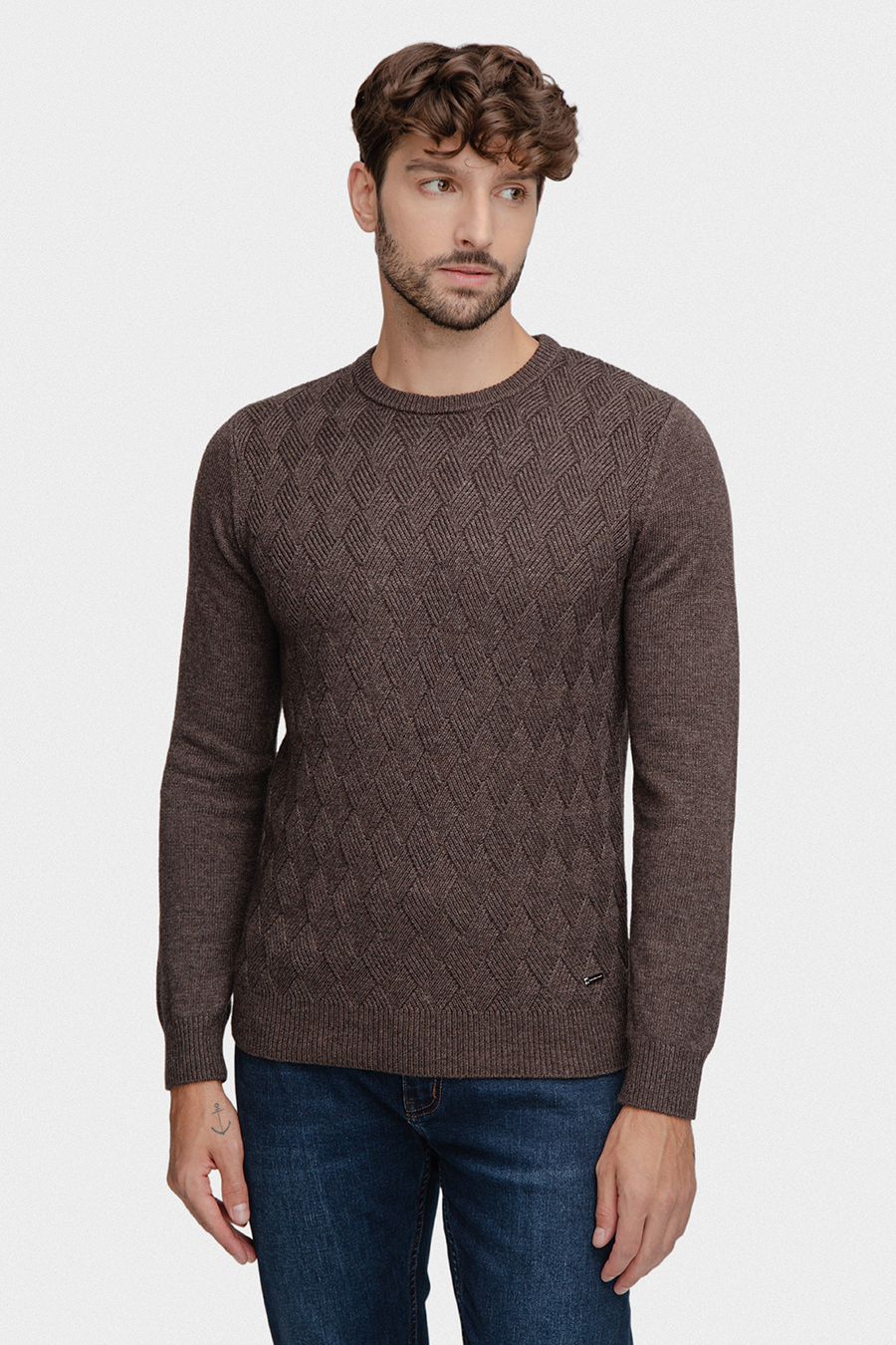 Wyrazista, gruba faktura w jodełkę nadaje mu nowoczesny, a zarazem ponadczasowy charakter. Klasyczny krój z okrągłym dekoltem i prostymi rękawami gwarantuje wygodę i uniwersalność. Ciepły brązowy odcień doskonale komponuje się z jeansami, chinosami czy spodniami w odcieniach beżu, granatu i szarości, tworząc elegancką zimową stylizację.