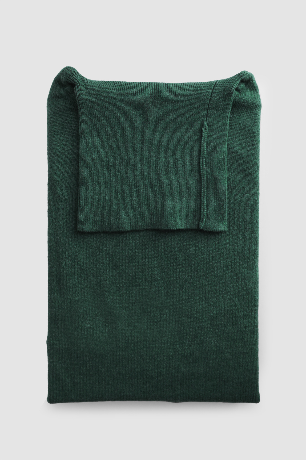 Głęboki, zielony kolor nadaje całości świeżości i wyróżnia się na tle klasycznych barw, jednocześnie pozostając łatwym do stylizowania. Gładka struktura podkreśla elegancki charakter swetra, a wykończenie w postaci ściągaczy przy mankietach i dolnym brzegu poprawia dopasowanie oraz komfort użytkowania. Regularny krój zapewnia swobodę ruchów i sprawia, że model świetnie leży na różnych typach sylwetki.