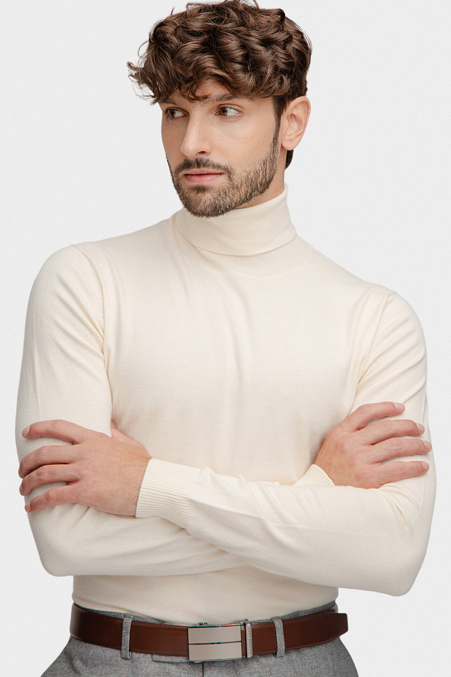 Jasny golf męski to klasyczna i elegancka propozycja, która sprawdzi się w wielu stylizacjach. Wykonany z mieszanki która zapewnia komfort noszenia, miękkość oraz trwałość. Dzięki temu model nie tylko dobrze się układa, ale również zachowuje swój kształt i jest przyjemny w dotyku.