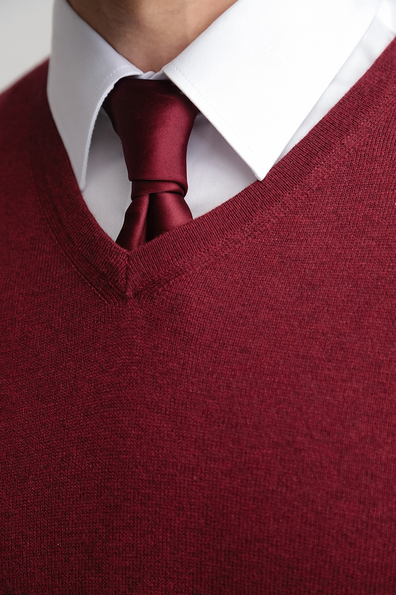 Bordowy sweter VALDEMARO to stylowa propozycja dla mężczyzn, którzy cenią wysoką jakość materiałów oraz ponadczasowy, elegancki charakter codziennych stylizacji. Wykonany z wyjątkowej mieszanki bawełny i kaszmiru, oferuje połączenie naturalnej miękkości, delikatności i subtelnego luksusu. Bawełna zapewnia przyjemny komfort noszenia i doskonałą przewiewność, a dodatek kaszmiru podnosi walory termiczne oraz nadaje dzianinie szlachetną w dotyku strukturę.