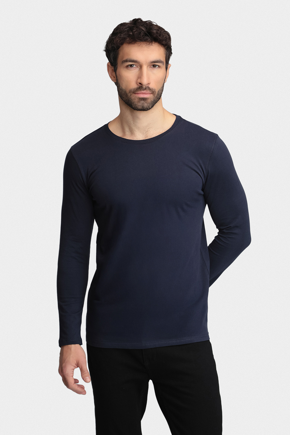 Zestaw trzech longsleeve’ów w kolorach białym, czarnym i granatowym to klasyczna propozycja wykonana w 100% z miękkiej, oddychającej bawełny, która zapewnia wygodę i pełen komfort na co dzień. Gładka, minimalistyczna tkanina nadaje każdej z koszulek uniwersalny charakter, dzięki czemu stanowią one doskonałą bazę do różnorodnych stylizacji – od codziennych, aż po bardziej smart-casualowe.
